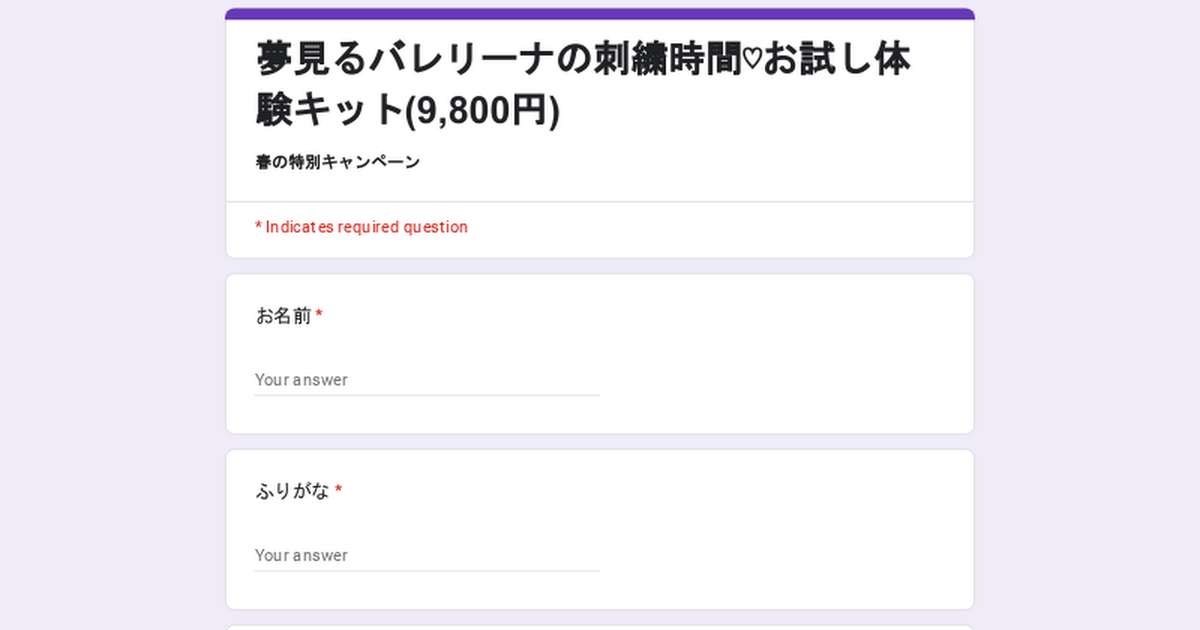 夢見るバレリーナの刺繍時間♡お試し体験キット(9,800円)